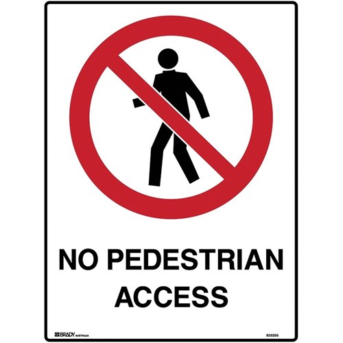 Brady Prohibition Sign No Pedestrian Access 450 x 600mmH Polypropylene White/Red/Black