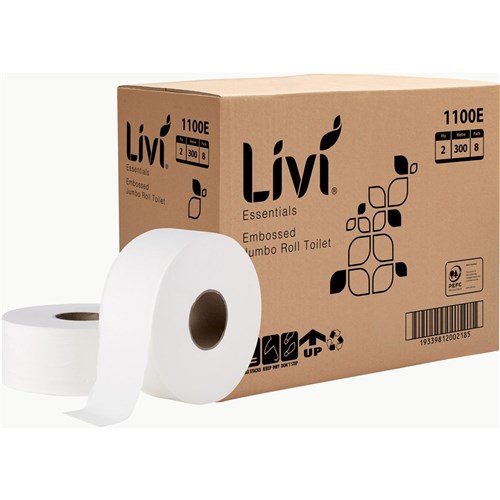 Livi Essentials Toilet Paper Jumbo Roll 2 Ply 300m Box Of 8