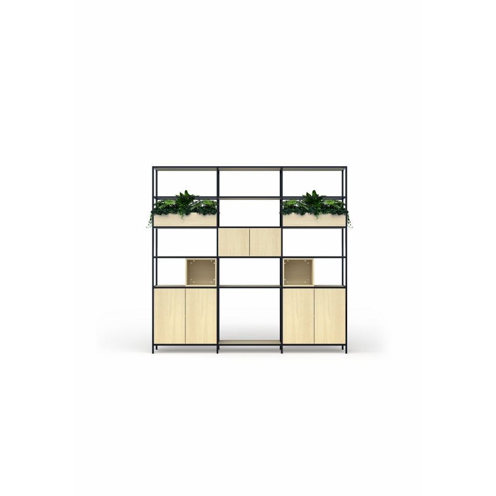 • OLG Rhodes Modular Shelving 3 Bay 2520W x 455D x 2400mmH Nordic Maple Black Frame