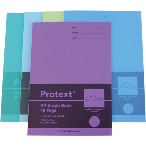 Protext Graph Book A4 10mm Squares 48 Page 70gsm Poly Cover Dolphin