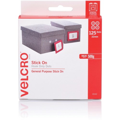 Velcro Brand Stick On Hook Only 22mm 125 Dots With Dispenser White